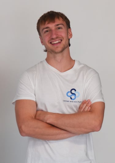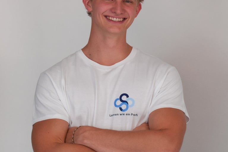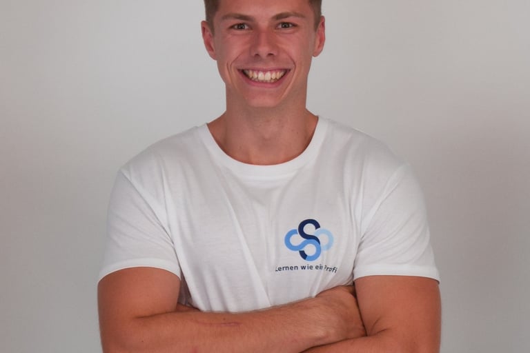 Hallo, ich bin Wendelin! In der Unterstufe im Gymnasium wollte ich nur mit möglichst wenig Aufwand durchs Schuljahr kommen. Mit 16 Jahren, als ich mich für Sport begeisterte, wollte ich lernen, wie ich mir wichtige Inhalte besser merken kann. Deshalb habe ich meine Lernsysteme überarbeitet, um Wissen, das mir wirklich wichtig ist, länger und einfacher zu behalten. Jetzt möchte ich das, was ich in dieser Zeit gelernt habe, an möglichst viele Schülerinnen und Schüler weitergeben.