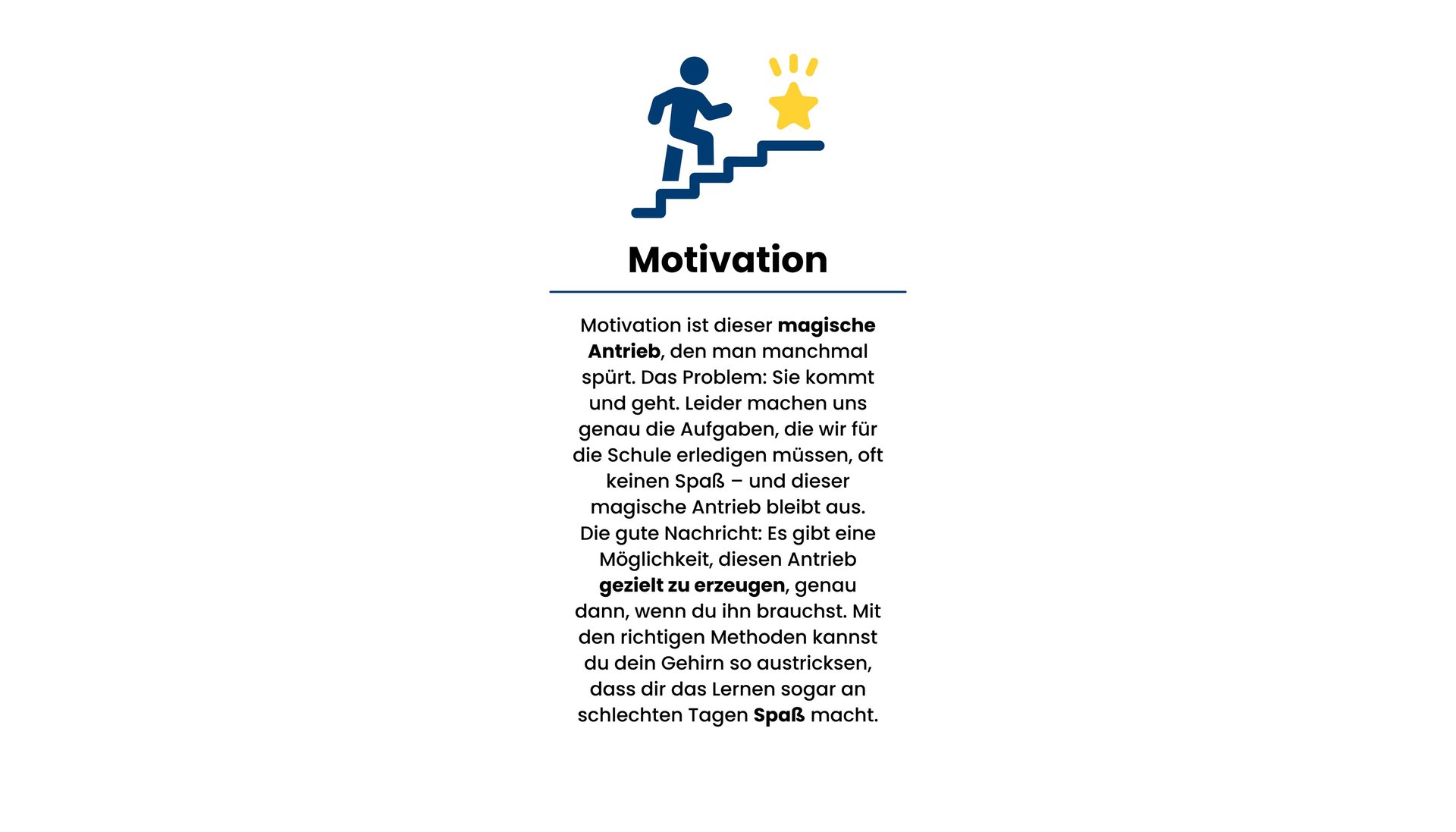Motivation ist dieser magische Antrieb, den man manchmal spürt. Das Problem: Sie kommt und geht. Leider machen uns genau die Aufgaben, die wir für die Schule erledigen müssen, oft keinen Spaß – und dieser magische Antrieb bleibt aus.